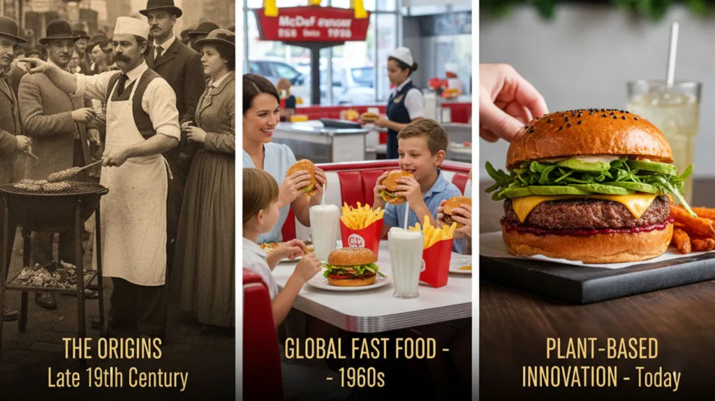 تاریخچه برگر، مسیر تحول از گوشت چرخکرده ساده در اروپا تا جهانی شدن و نوآوریهای مدرن، نقش فرهنگی …