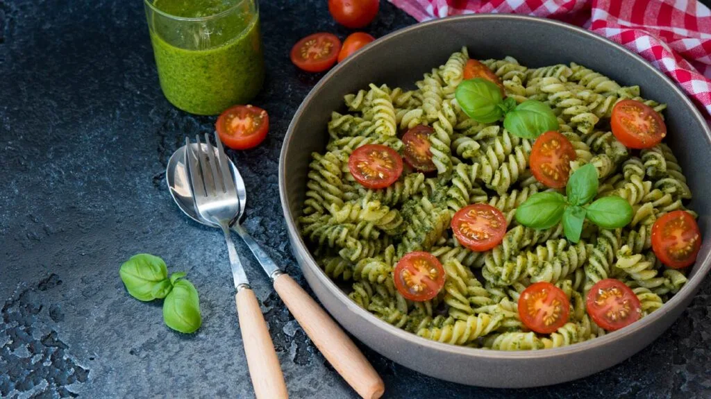 Pesto pasta salad with Mana Rotini Small is a popular dish. It is served with pesto sauce that …